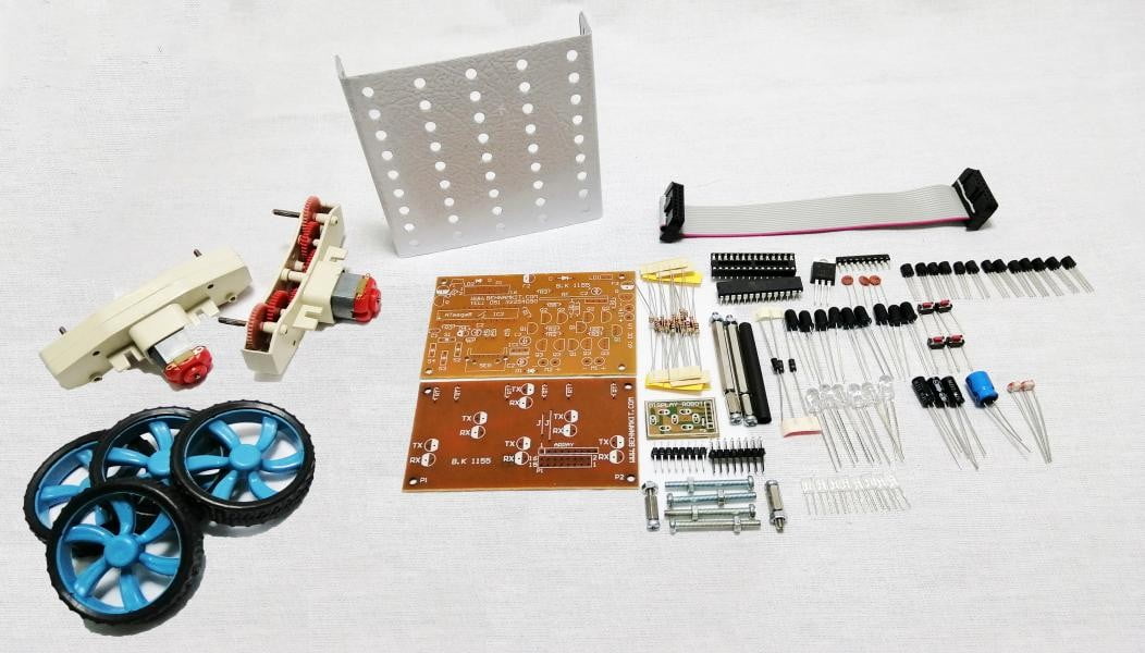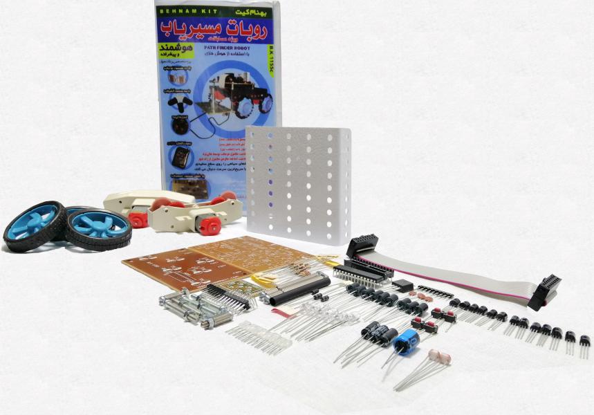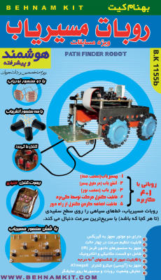 کیت ربات مسیر یاب ویژه مسابقات: تعقیب خط، آتش یاب، تعقیب نور و کنترل حرکت ربات توسط کیپد میباشد با کد: B.K1155