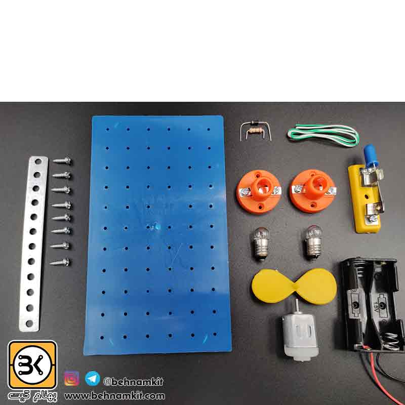 کیت پنکه بسازید و توضیحاتی درباره آزمایشگاه الکترونیک سطح یک انرژی الکتریکی پایه چهارم دبستان و بیش از 10 آزمایش الکتریکی با تغذیه 3 ولت و با کد: B.K1171