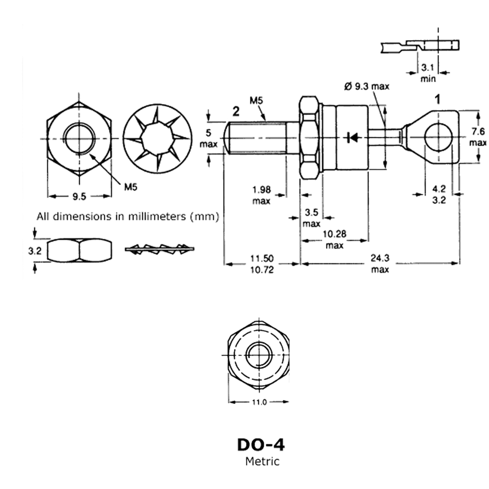 دیود پیچی DSI17-12A یک دیود قدرت کاتد پیچ 25 آمپر 1200 ولت