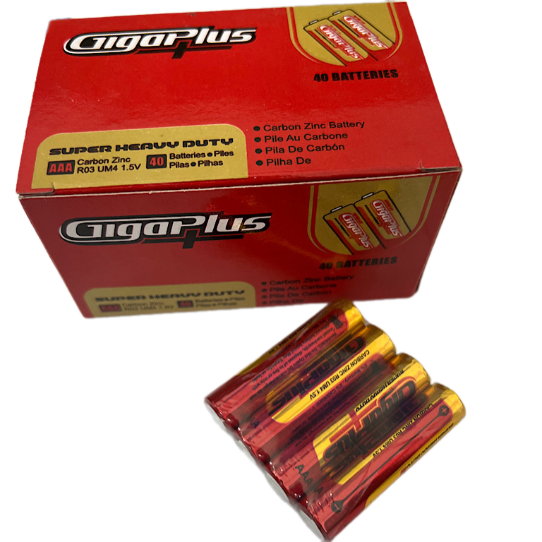 باتری نیم قلمی چهارتایی شرینک مدل R03 مارک GIGAPLUS