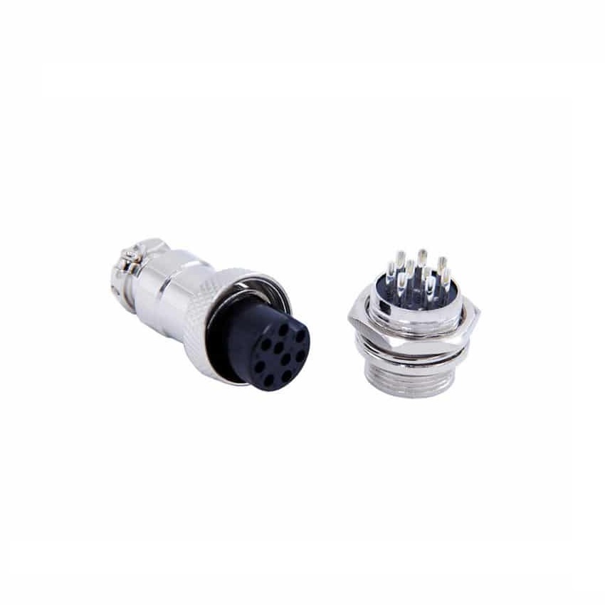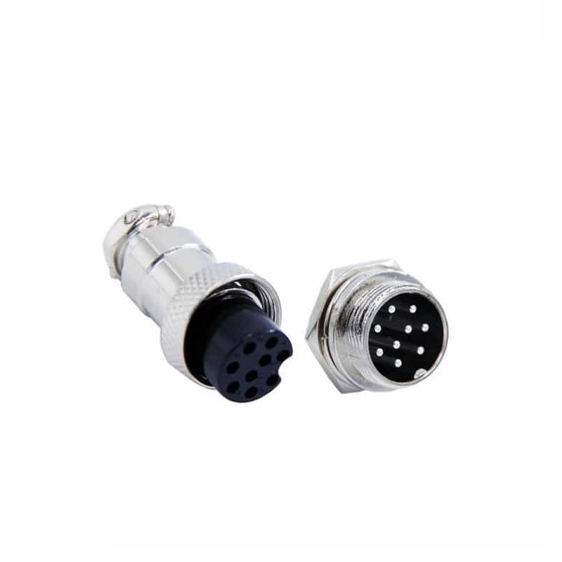 کانکتور گرد استیلی 9 پین مدل GX16-9PIN شامل نری پنلی و مادگی سرکابلی قطر 16 میلی متر و تحمل جریان 5 آمپری
