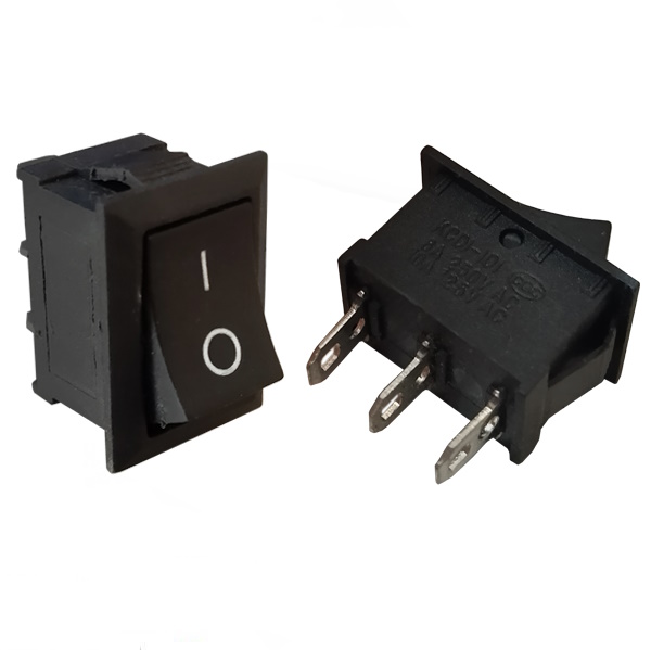 کلید راکر دوحالته خاموش و روشن متوسط 3 پین 6 آمپر 250 ولت رنگ مشکی مدل KCD1-101