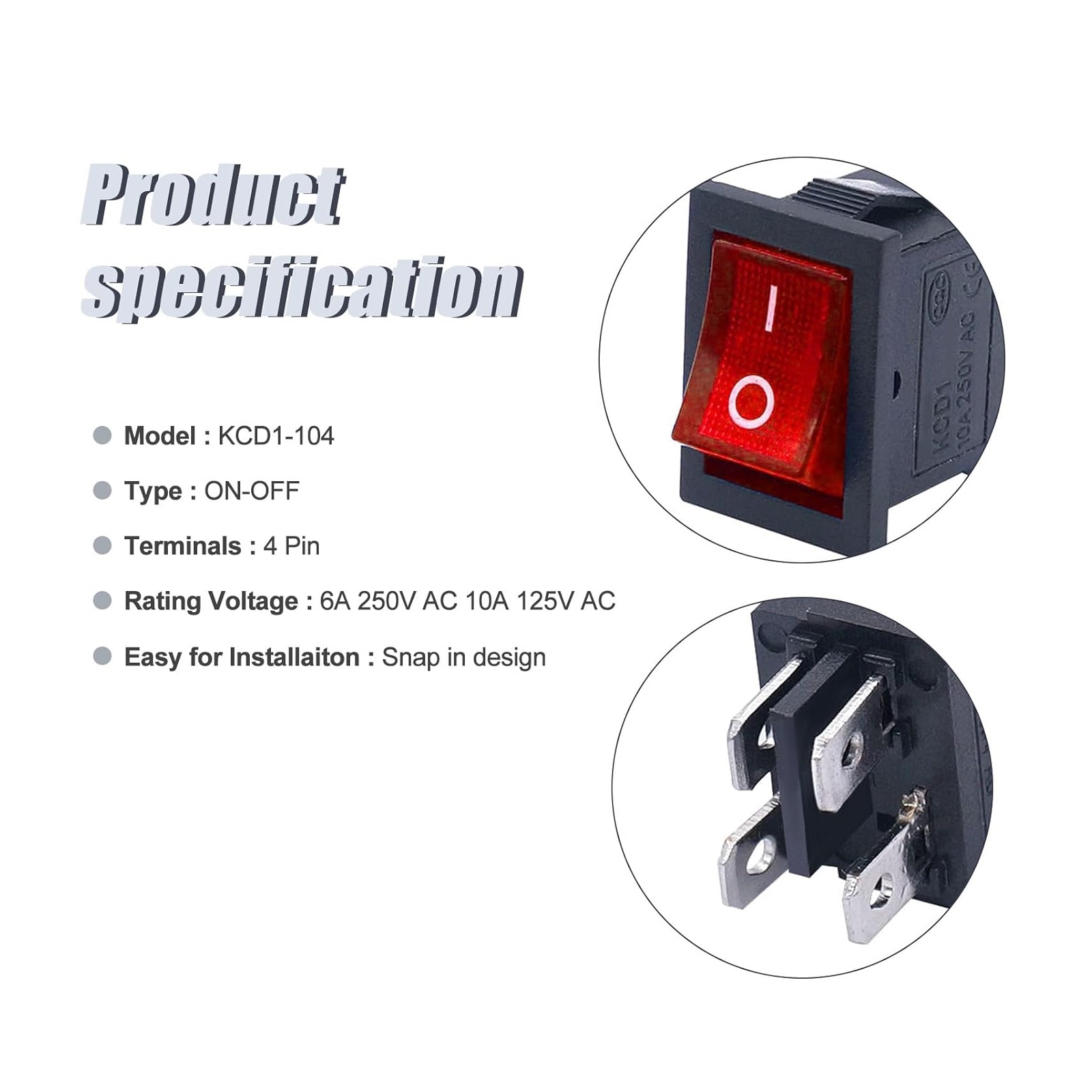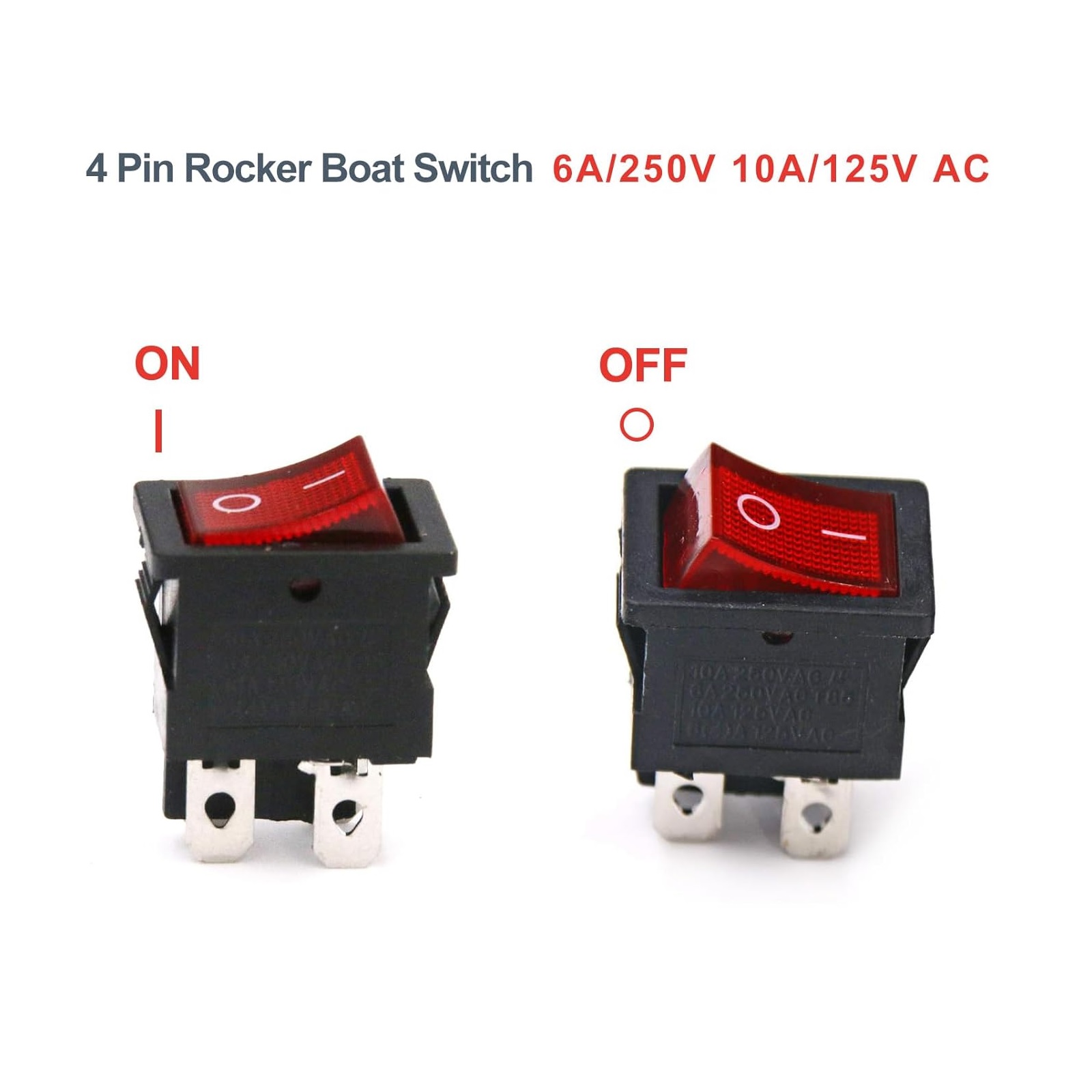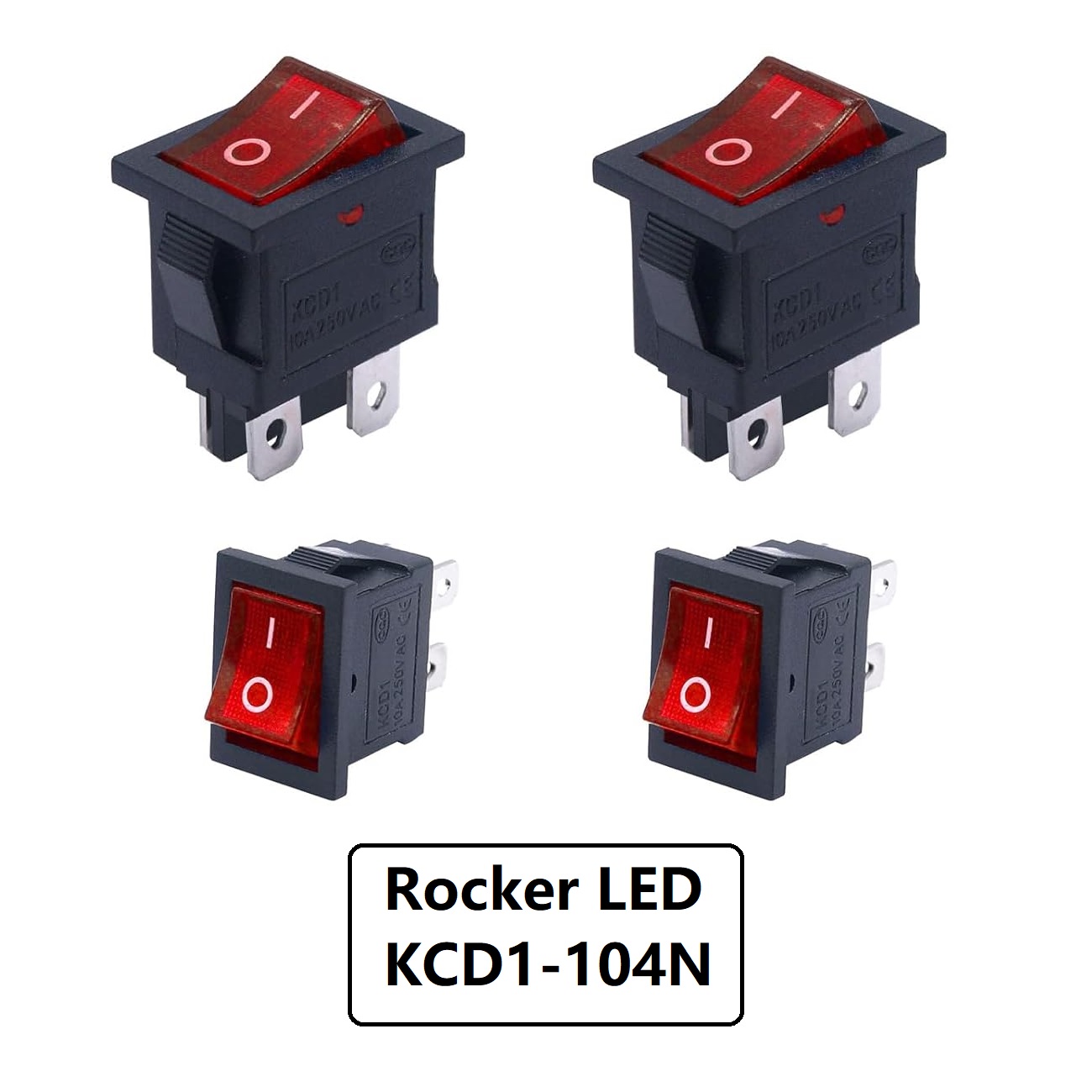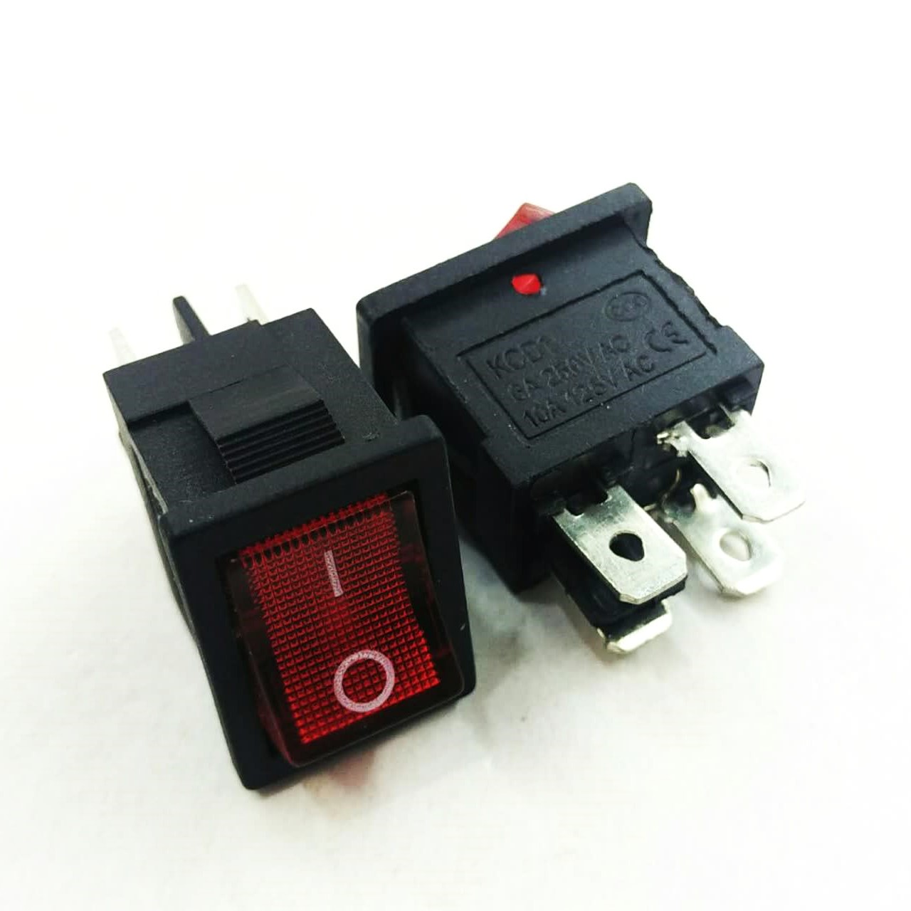 کلید راکر دوحالته چراغدار قرمز خاموش و روشن متوسط 4 پین 6 آمپر 250 ولت مدل KCD1