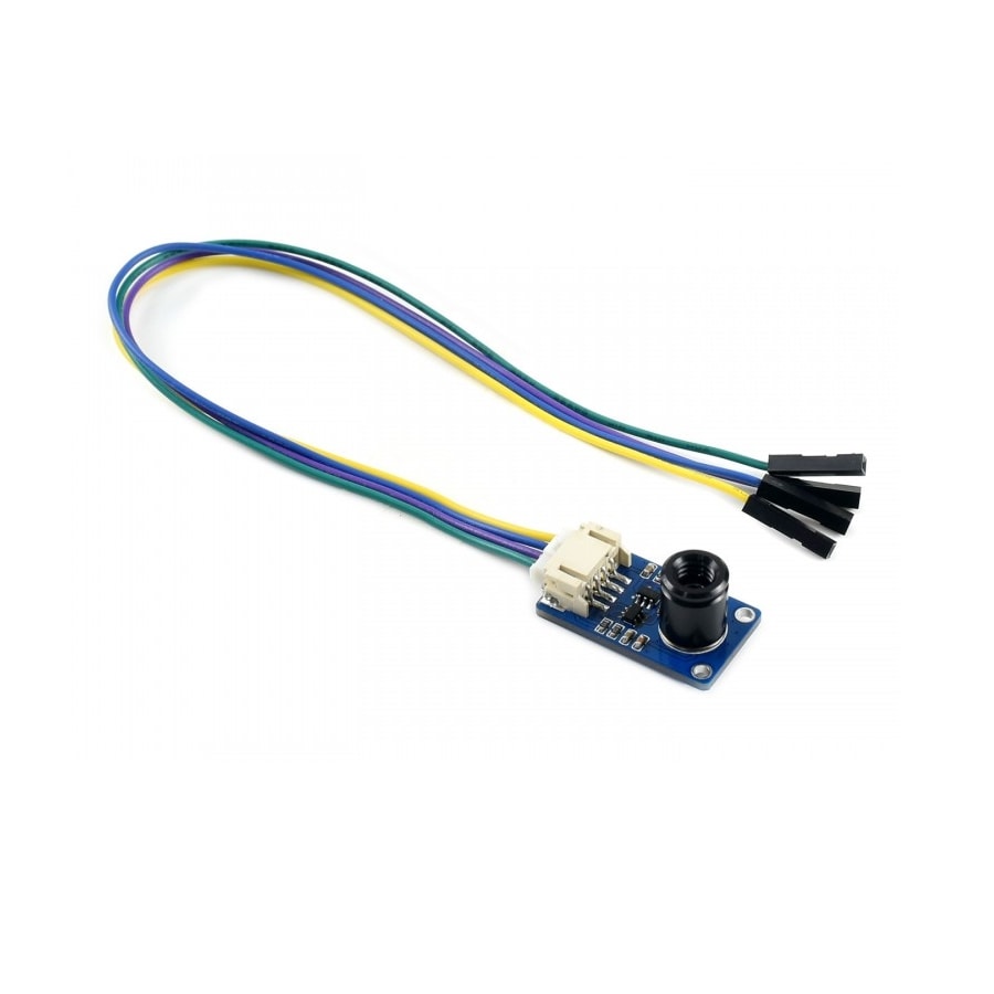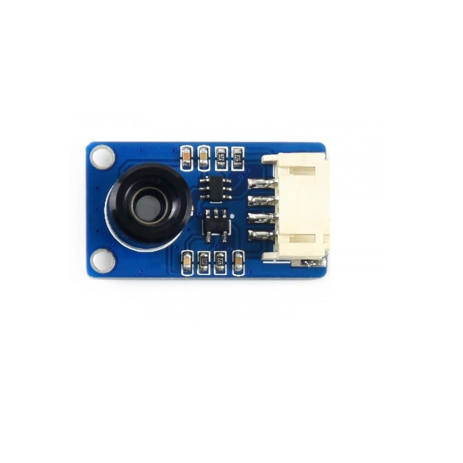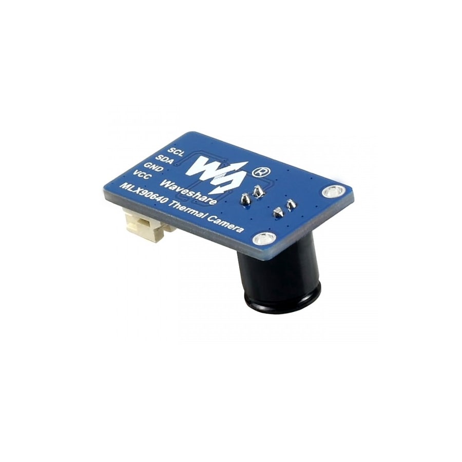 دوربین حرارتی MLX90640، با سایز تصویر 32×24 پیکسل و زاویه دید °55، دوربین تصویربرداری حرارتی با آرایه IR و رابط I2C برای ارتباط است. این ماژول با ولتاژهای 3.3V/5V سازگار بوده و پلتفرمهای رزبریپای، آردوینو (ESP32) و STM32 و.. را پیشتیبانی میکند. با استفاده از آرایه سنسور حرارتی ماودن قرمز دور، این ماژول میتواند توزیع IR اشیاء را در زاویه دید تشخیص داده و دادهها را با انجام محاسبات به دمای سطح تبدیل نماید. در نتیجه این ماژول میتواند تصویر گرمایی را تولید کند. به دلیل فرم کوچک، این ماژول را میتوان به راحتی در برنامههای مختلف کنترل صنعتی یا هوشمند استفاده کرد.