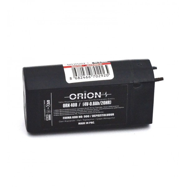 باتری خشک LEAD ACID BATTERY قابل شارژ 4 ولت 800 میلی آمپر ساعت مدل ORN408 برند اوریون ساخت PRC، مناسب برای چراغ مطالعه، اسباب بازی و سایر وسایل برقی با تعداد شارژ و دشارژ بالا