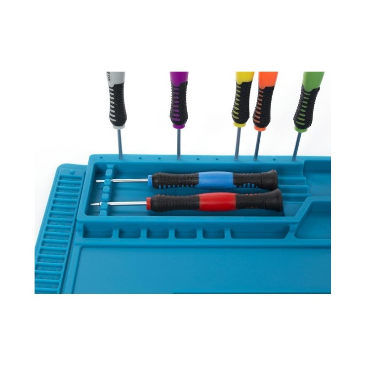 در این پد قسمتهایی دارای مگنت بوده تا در صورت باز کردن موبایل، تبلت و دستگاههای مختلف پیچها را روی این قسمتها بگذارید تا گم نشوند. همچنین روی این پد قسمتهایی برای قرارگیری ابزار و قطعات تعبیه شده است.